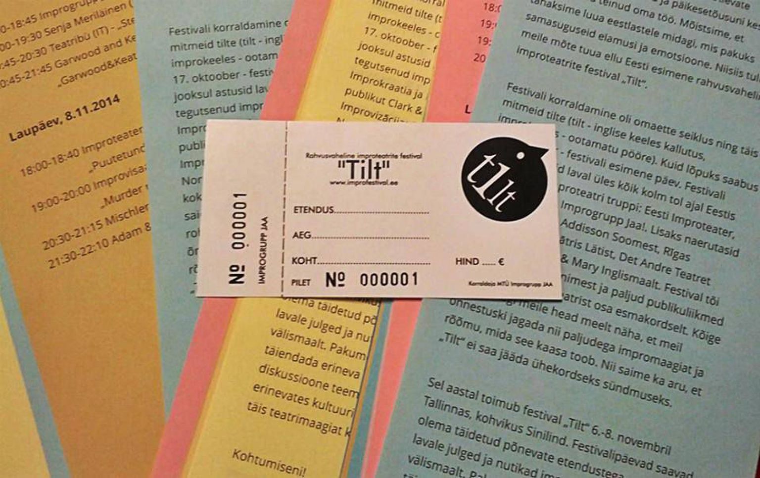 «Tilt» toimub sel aastal juba kolmandat korda. Varasematel aastatel on festivalil osalenud esinejad muuhulgas ka Lätist, Hollandist, Norrast, Itaaliast, Austraaliast. Sel aastal toimuv festival valmib kolme improtrupi, Eesti Improteater, improteater Kogu Moos ja Improgrupp Jaa! koostöös. loe edasi