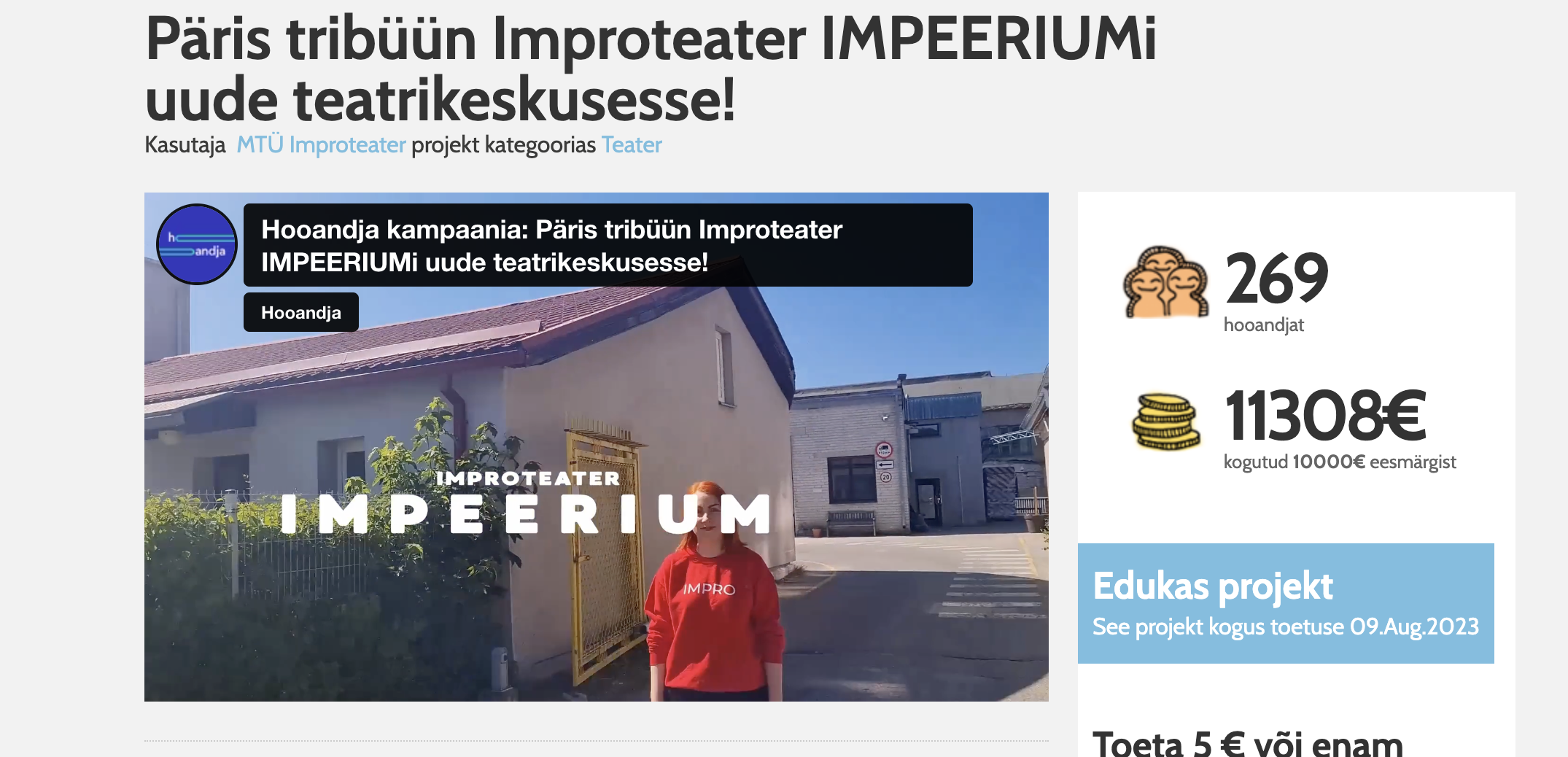 Meie oleme Improteater IMPEERIUM. /../ Nüüd oleme jõudnud enda teatri arengus uude väga olulisse etappi - meil on lõpuks valmimas päris enda teatrisaal! Hetkel tegelemegi ehitusega, et juba sügisel see teie jaoks avada. loe edasi